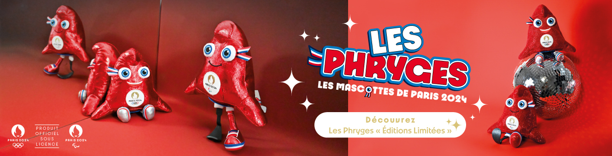 LES MASCOTS OLYMPIQUE ET PARALYMPIQUE ÉDITIONS LIMITÉES, FABRIQUÉES EN FRANCE Produits officiels sous licence Paris 2024 Bonjour ! Nous sommes les Mascottes Officielles de…