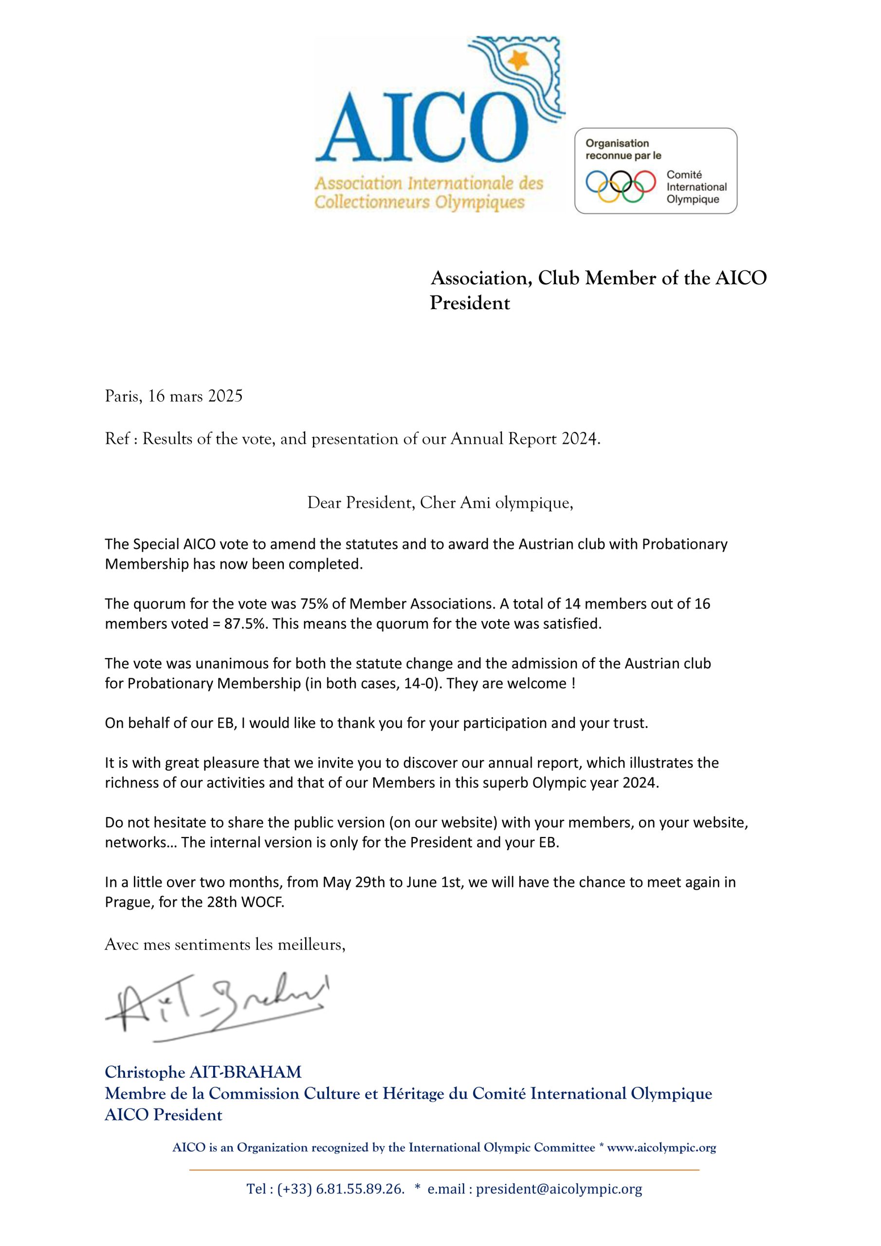 Leggi tuttoFor the second edition of the AICO Olympic Collector Award 2025 Christophe AIT-BRAHAM, AICO President had the honor of presenting this award on behalf of AICO to Mr. Josef KOCI, President of Olympsport In recognition of his contribution...